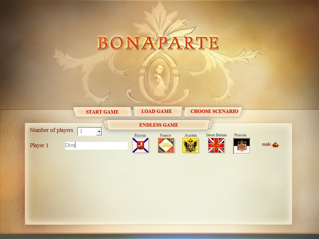 Chose one out of 5 nations (France, Prussia, Austria, Russia or Great Britain) and lead them through the oncoming 70 years. 1 to 5 players may play from one computer. Furthermore, you may re-play historical scenarios.
